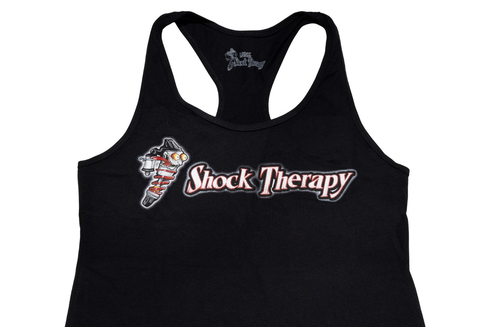 These Shock Therapy women's racerback tanks feature our updated Shock Therapy font and Shocky logo